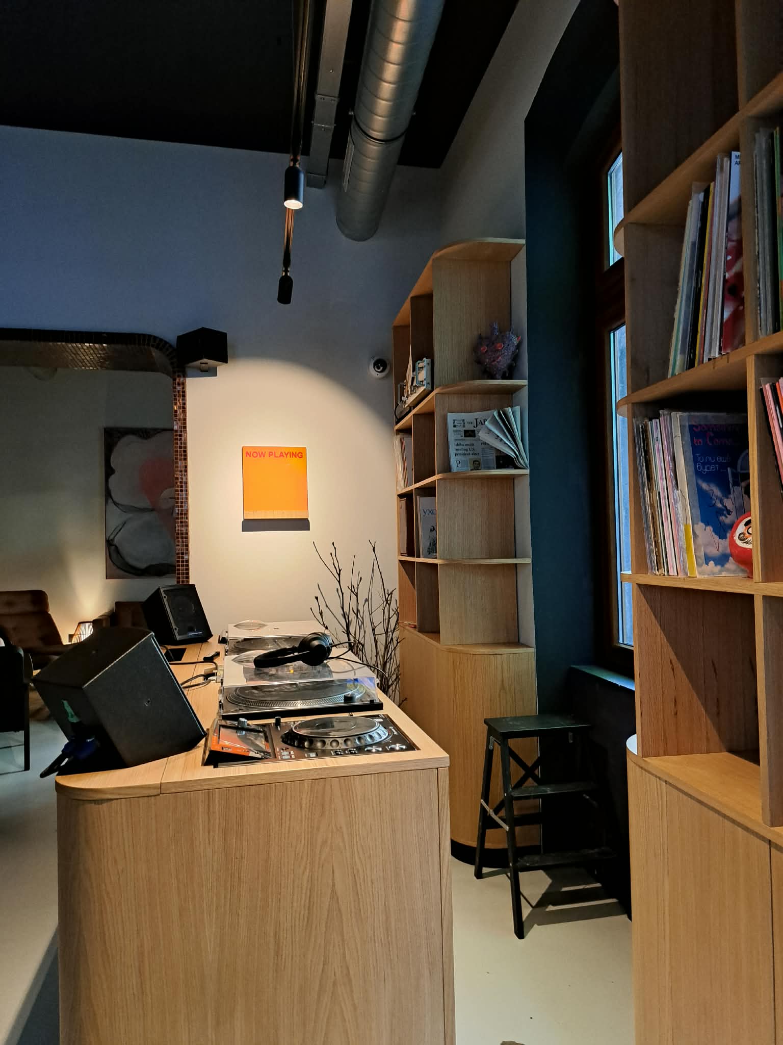At the center sits a beautifully designed DJ booth, yet Kissa 10 is not about high-energy dancing. It is about listening — properly. Conversations flow, vinyl spins, and the atmosphere remains intimate and unhurried.