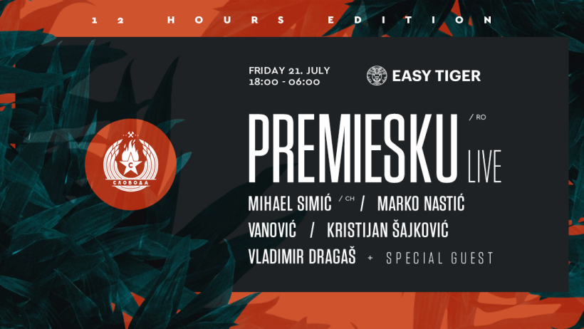 On Friday, July 21st Easy Tiger crew will be joined by the currently most famous Romanian Live Act – Premiesku, as well as the guest from Switzerland Mihael Simic in the special 12-hour event. Support will be given to Marko Nastic by the residents of the party series: Kristijan Sajkovic, Vanovic and Vladimir Dragas. Intro and outro sets will be reserved for special guests.